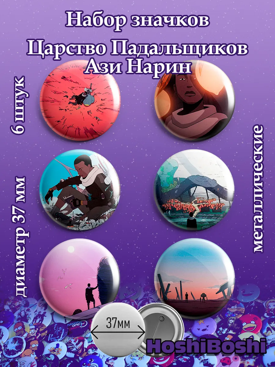 Набор из 6 металлических значков с изображениями из сериала Царство падальщиков ( Scavengers Reign ).