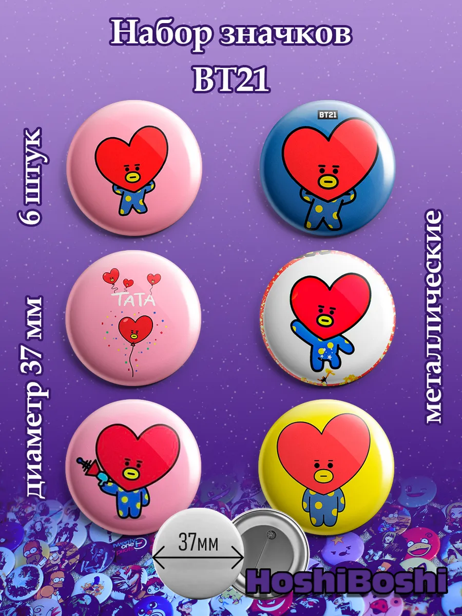 Набор из 6 металлических значков с изображениями БТ21 ( BT21 ).