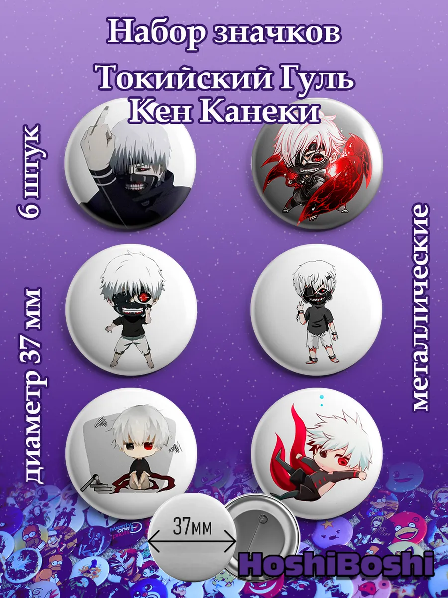 Набор из 6 металлических значков с изображениями из аниме Токийский гуль ( Tokyo Ghoul ).