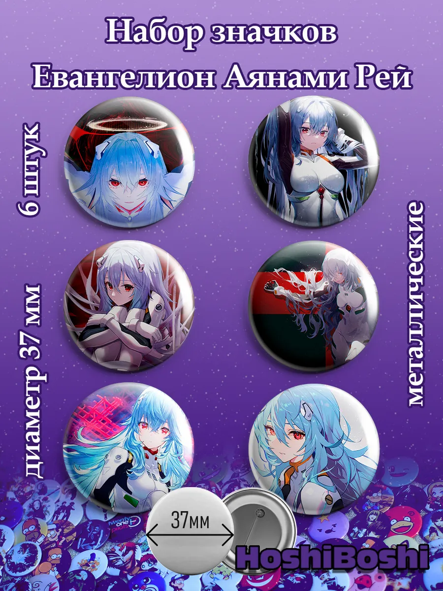 Набор из 6 металлических значков с изображениями из аниме Евангелион ( Neon Genesis Evangelion ).