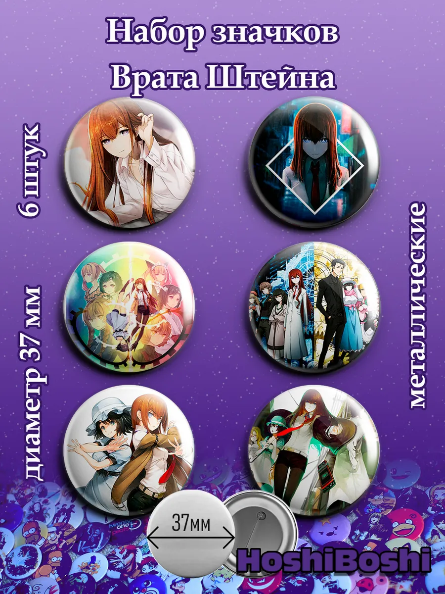 Набор из 6 металлических значков с изображениями из аниме Врата Штейна ( Steins Gate ).