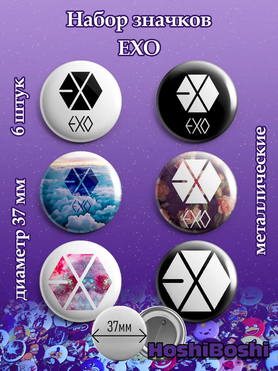 Набор из 6 металлических значков с изображениями с Кей-поп группой Экзо ( EXO ).