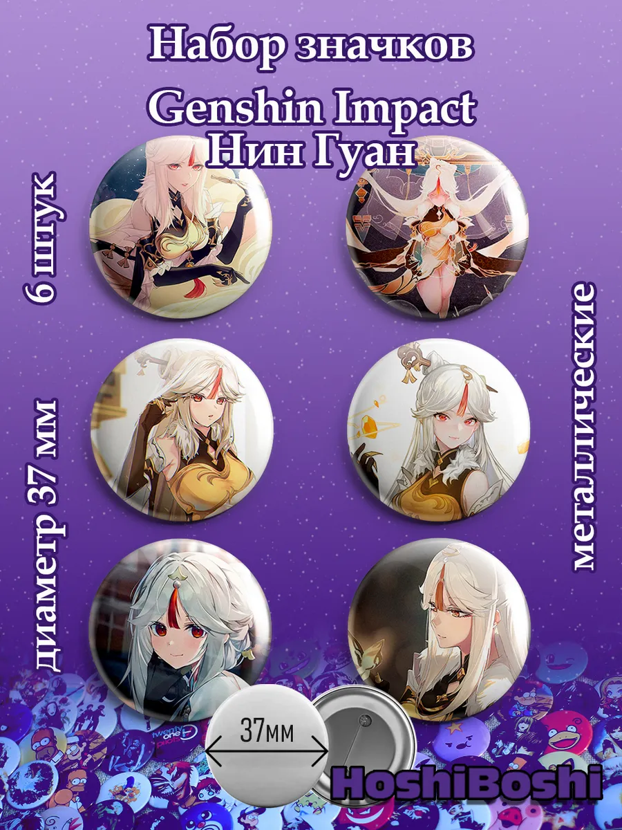 Набор из 6 металлических значков с изображениями из игры Геншин Импакт ( Genshin Impact ).