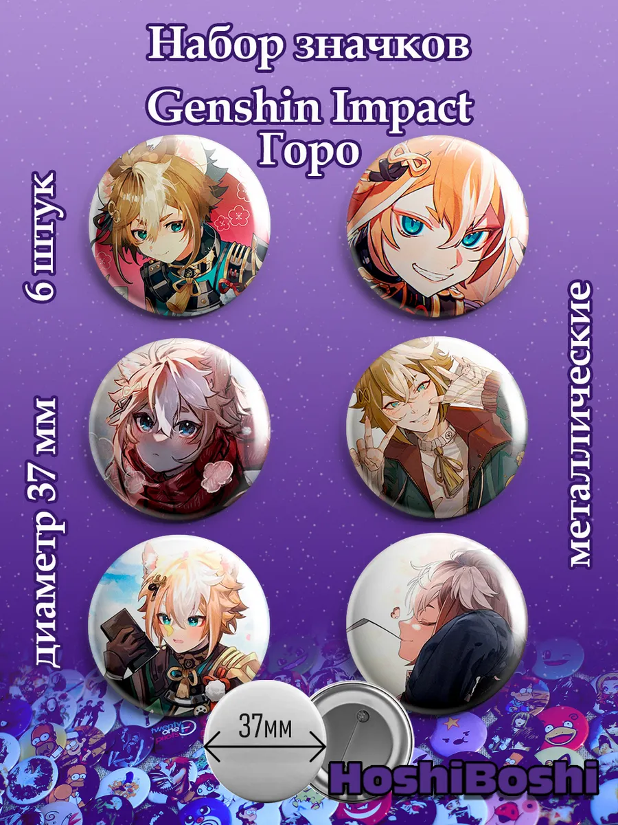 Набор из 6 металлических значков с изображениями из игры Геншин Импакт ( Genshin Impact ).