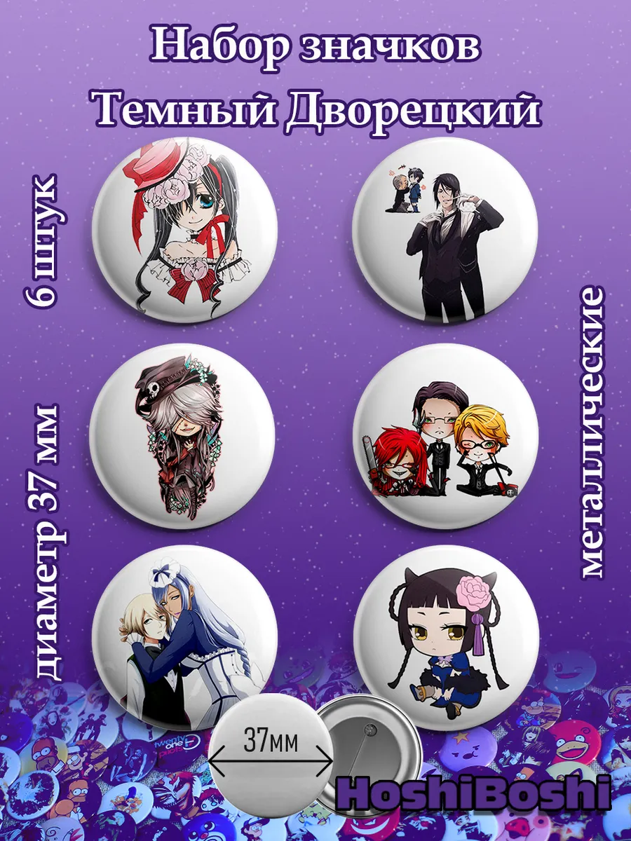 Набор из 6 металлических значков с изображениями из аниме Темный дворецкий ( Kuroshitsuji Black Butler ).