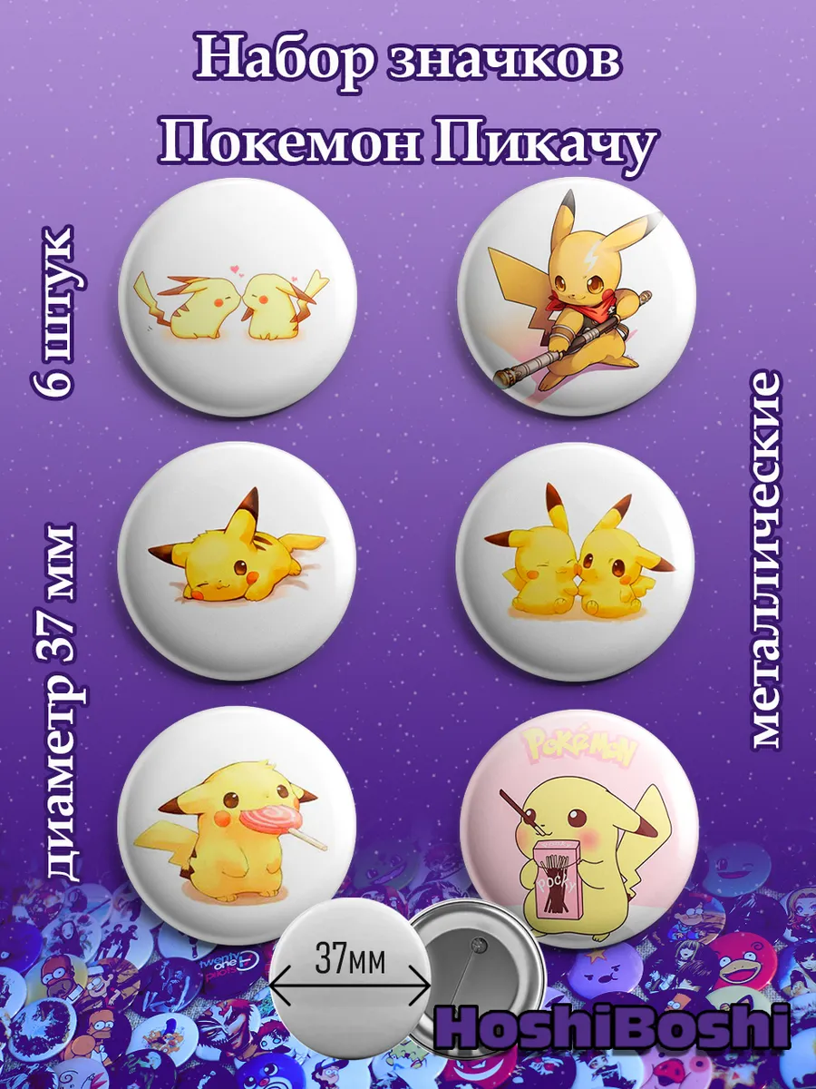 Набор из 6 металлических значков с изображениями из аниме Покемон ( Pokémon ).