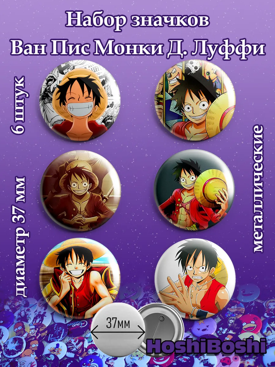 Набор из 6 металлических значков с изображениями из аниме Ван Пис ( One Piece ).