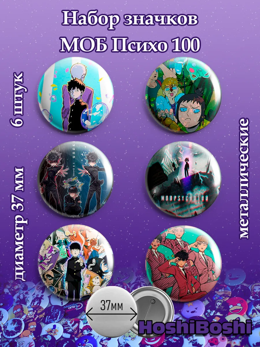 Набор из 6 металлических значков с изображениями из аниме Моб Психо 100 ( Mob Psycho 100 ).