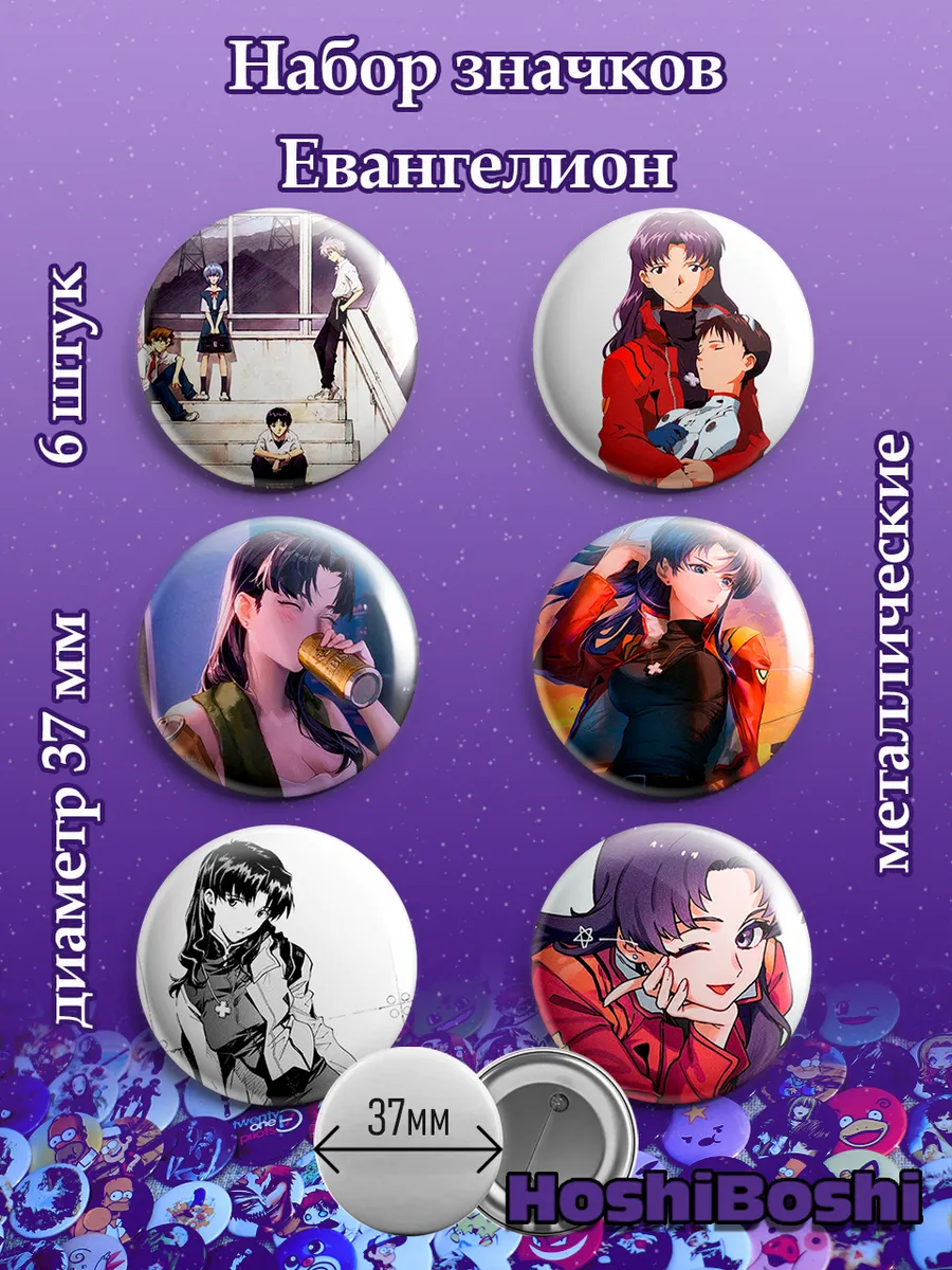 Набор из 6 металлических значков с изображениями из аниме Евангелион ( Neon Genesis Evangelion ).
