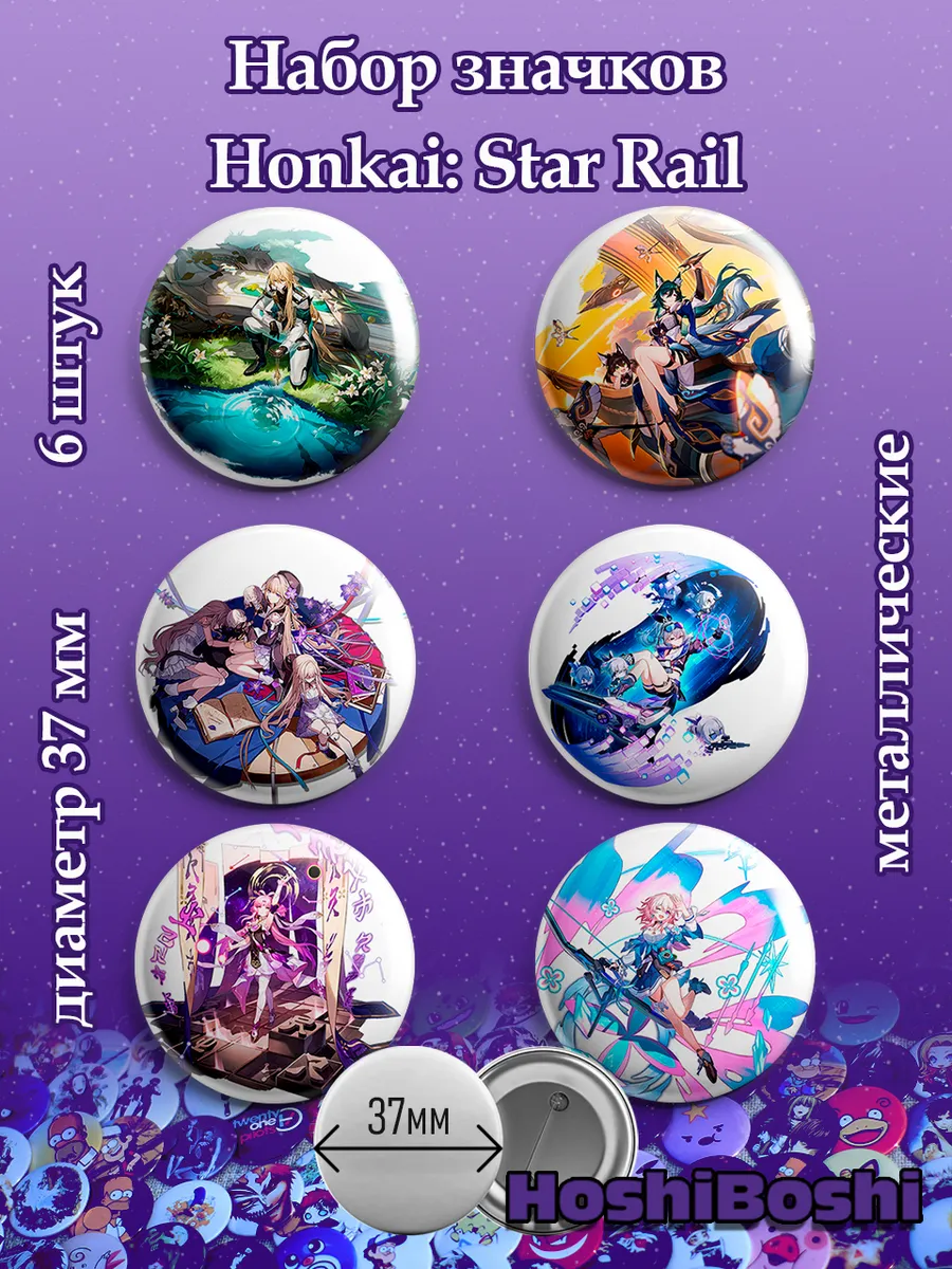Набор из 6 металлических значков с изображениями из игры Хонкай Стар Рейл ( Honkai: Star Rail ).