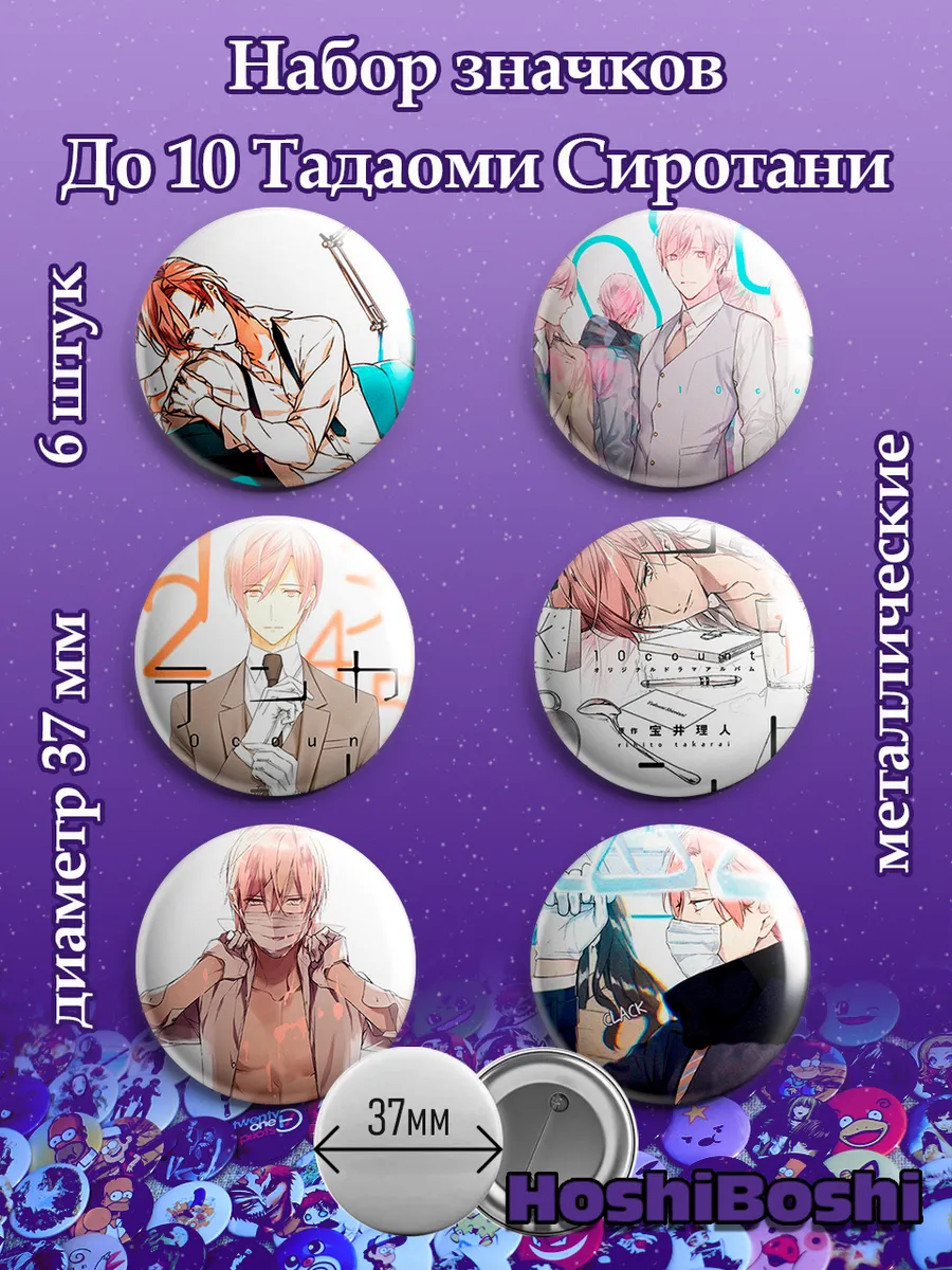 Набор из 6 металлических значков с изображениями из аниме До 10 ( Ten Count ).