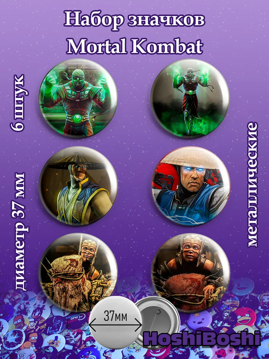 Набор из 6 металлических значков с изображениями из игры Мортал Комбат ( Mortal Kombat ).