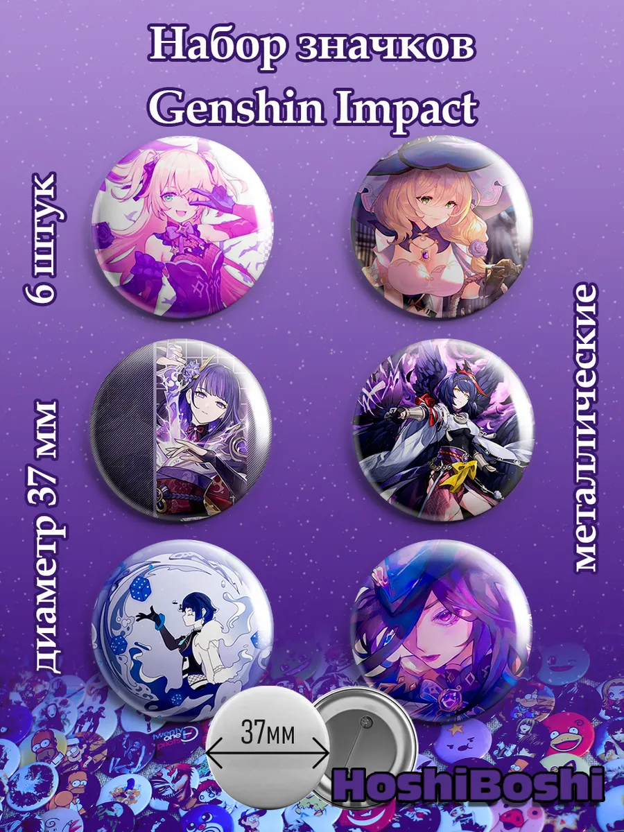 Набор из 6 металлических значков с изображениями из игры Геншин Импакт ( Genshin Impact ).
