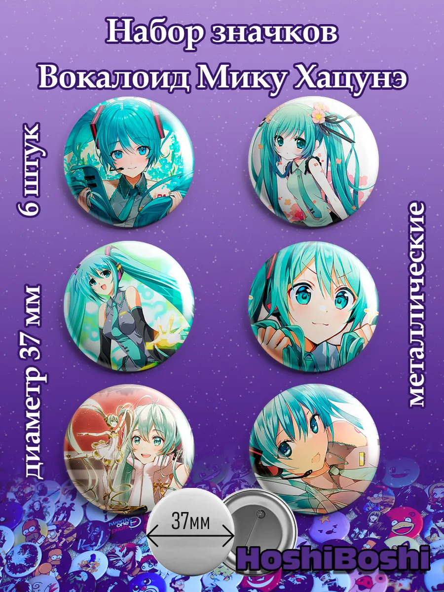 Набор из 6 металлических значков с изображениями Вокалоидов ( Vocaloid ).