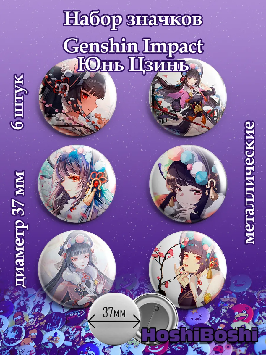 Набор из 6 металлических значков с изображениями из игры Геншин Импакт ( Genshin Impact ).