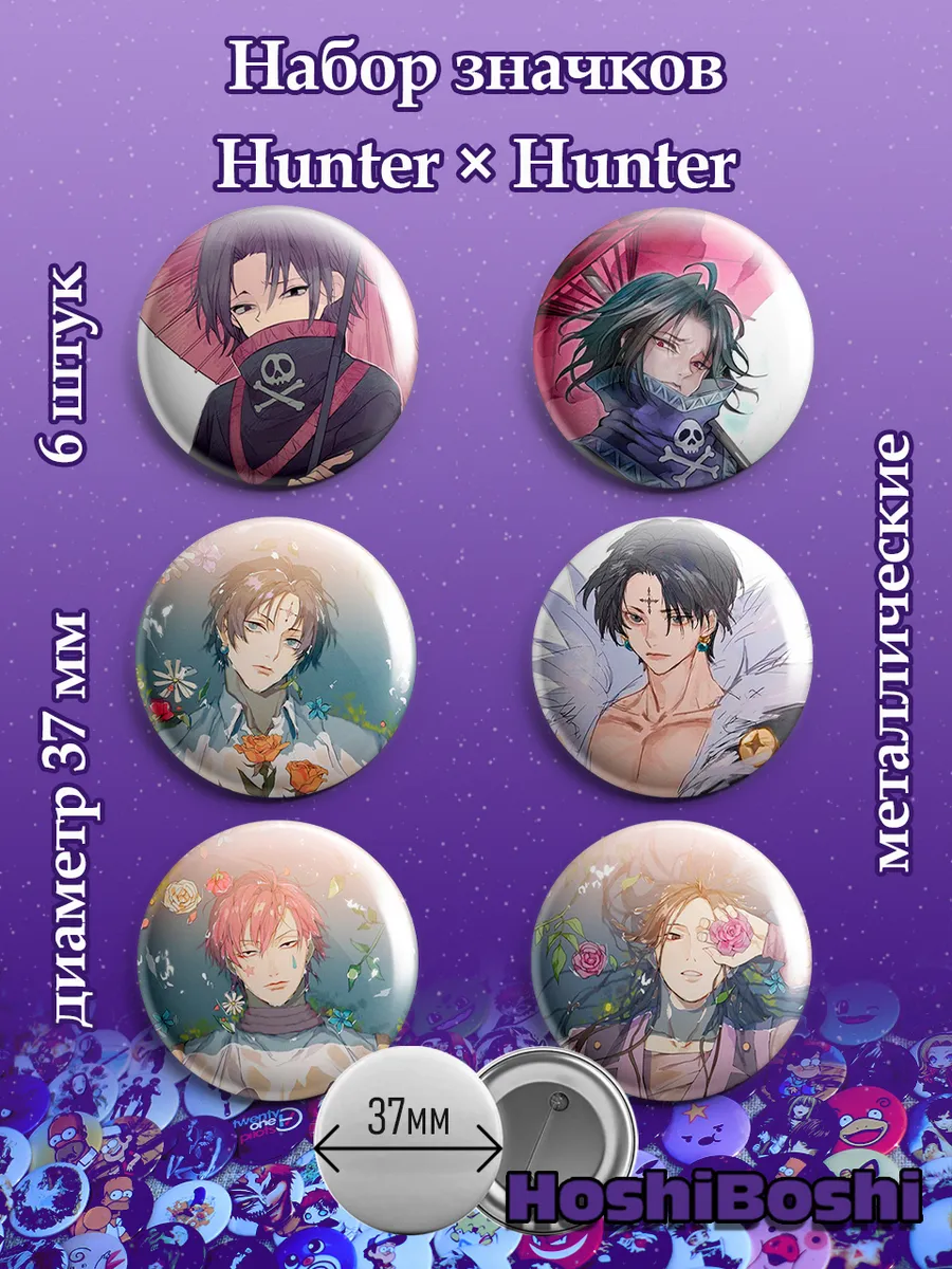 Набор из 6 металлических значков с изображениями из аниме Хантер х Хантер ( Hunter × Hunter ).