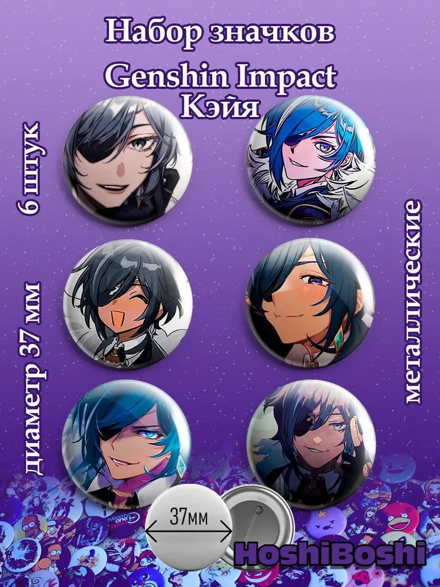 Набор из 6 металлических значков с изображениями из игры Геншин Импакт ( Genshin Impact ).