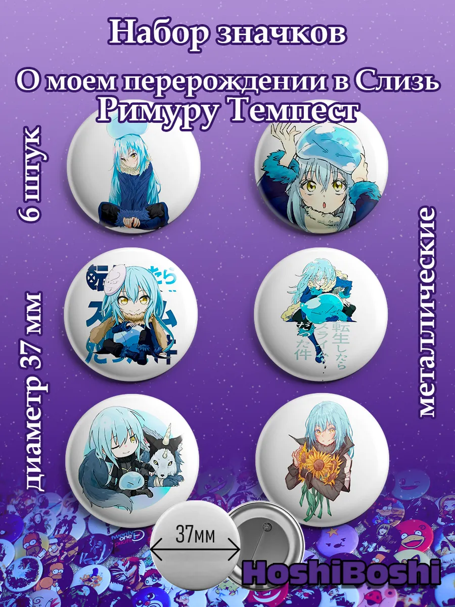 Набор из 6 металлических значков с изображениями из аниме О моем перерождении в слизь ( Tensei shitara Slime Datta Ken ).