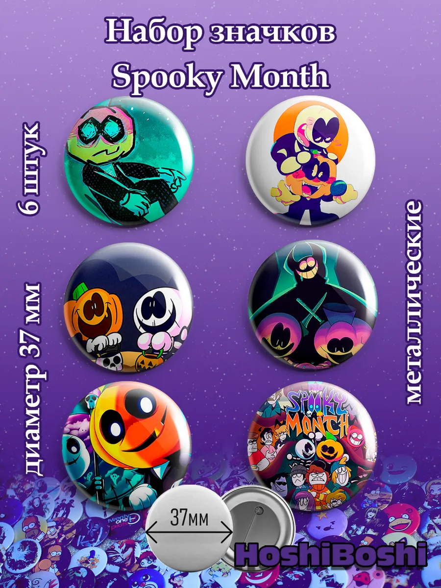 Набор из 6 металлических значков с изображениями с игрой Жуткий месяц ( Spooky Month ).