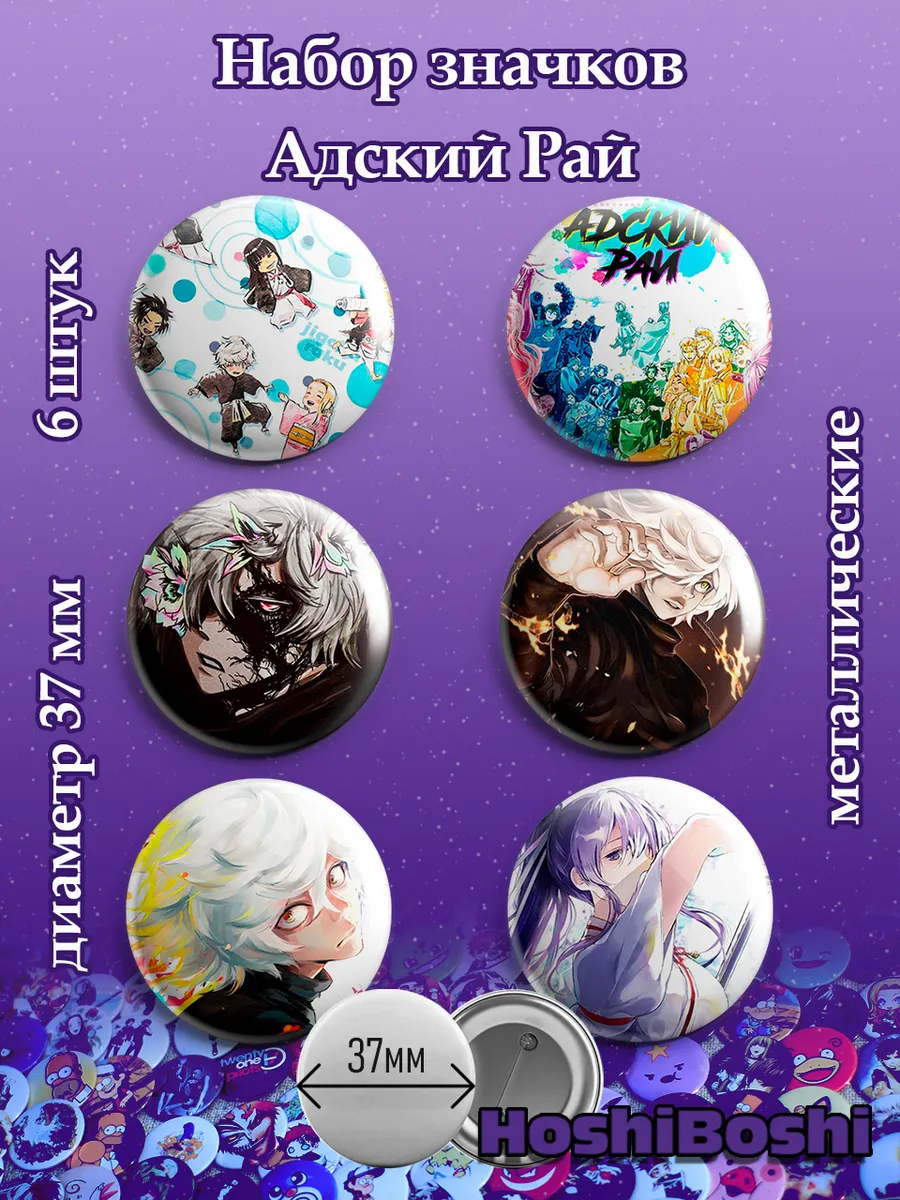 Набор из 6 металлических значков с изображениями из аниме Адский Рай ( Hell's Paradise: Jigokuraku ).