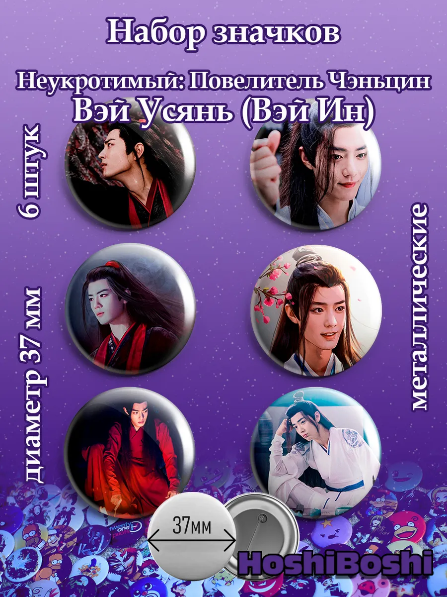 Набор из 6 металлических значков с изображениями из дорамы Неукротимый Повелитель Чэньцин Магистр дьявольского культа ( Mo dao zu shi ).