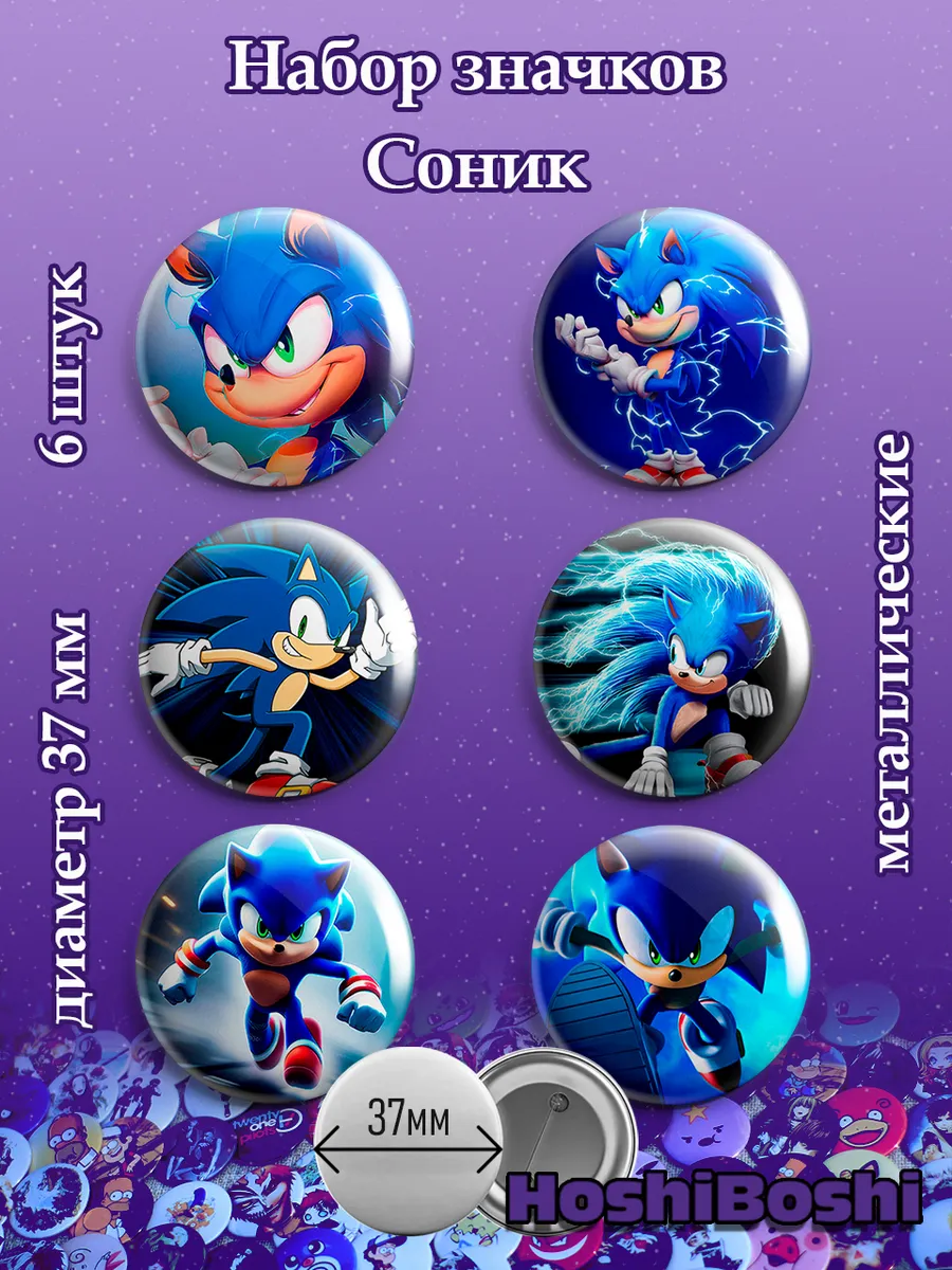 Набор из 6 металлических значков с изображениями с персонажем Соник ( Sonic ).