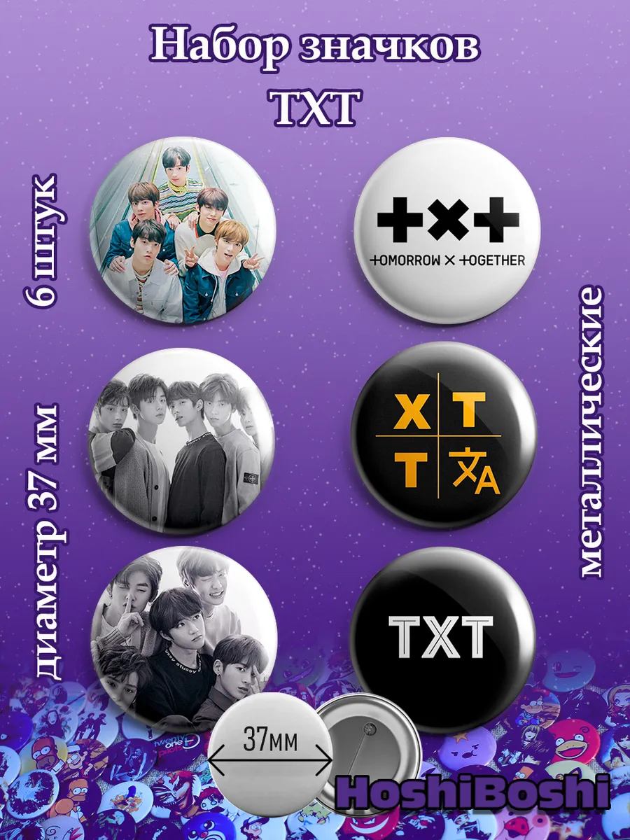 Набор из 6 металлических значков с изображениями Кей-поп группы ТХТ ( TXT ).