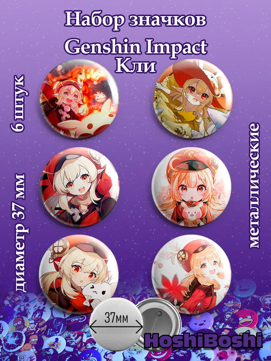 Набор из 6 металлических значков с изображениями из игры Геншин Импакт ( Genshin Impact ).