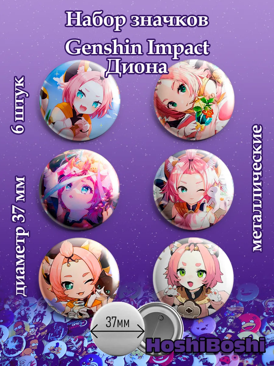 Набор из 6 металлических значков с изображениями из игры Геншин Импакт ( Genshin Impact ).