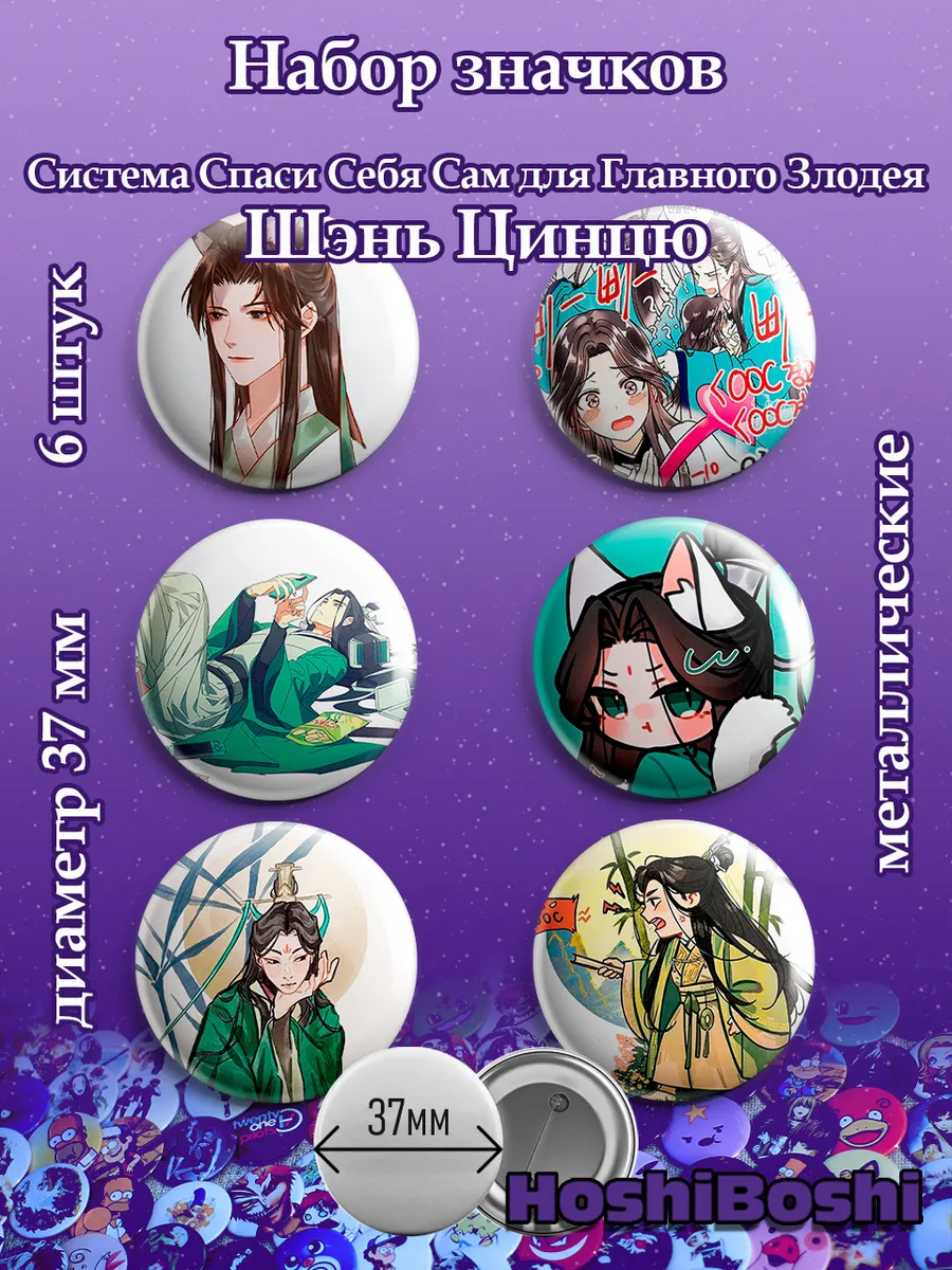 Набор из 6 металлических значков с изображениями из аниме Система спаси себя сам для главного злодея ( Chuan Shu Zijiu Zhinan ).