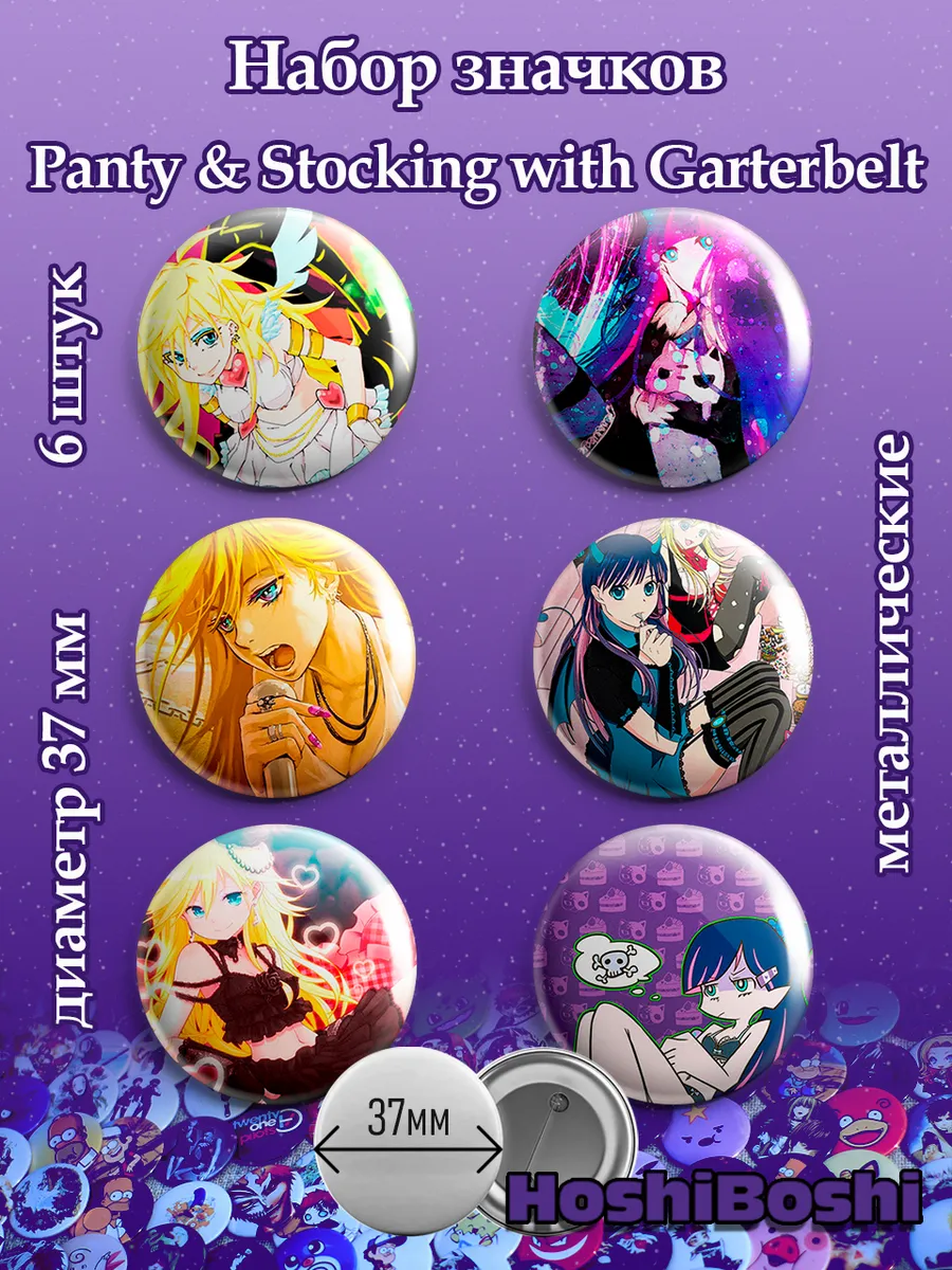 Набор из 6 металлических значков с изображениями из аниме Труска и Чулко ( Panty & Stocking with Garterbelt ).