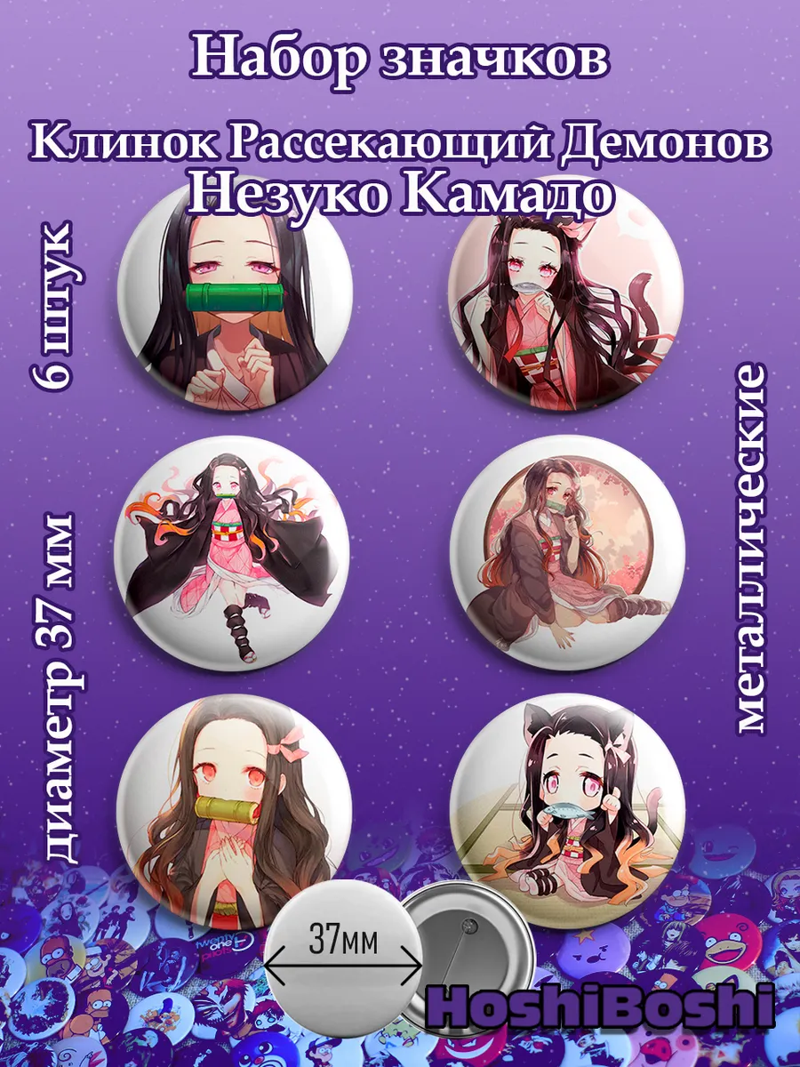 Набор из 6 металлических значков с изображениями из аниме Клинок Рассекающий Демонов ( Demon Slayer: Kimetsu no Yaiba ).