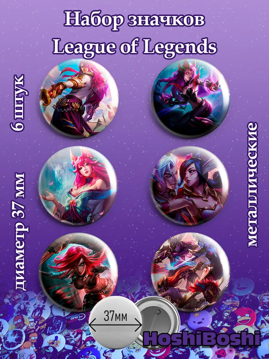 Набор из 6 металлических значков с изображениями из игры Лига Легенд ( League of Legends ).