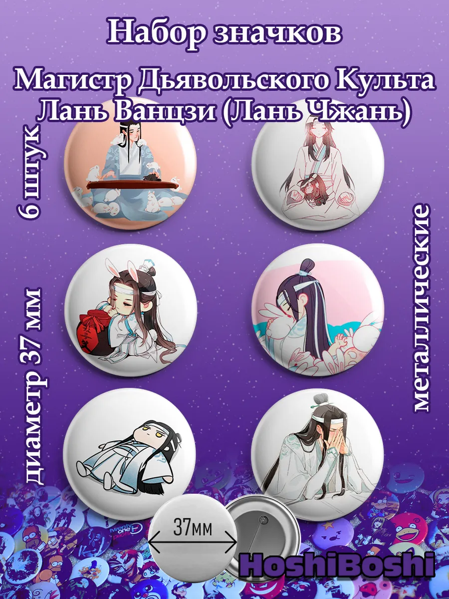 Набор из 6 металлических значков с изображениями из аниме Магистр Дьявольского Культа ( Mo Dao Zu Shi ).