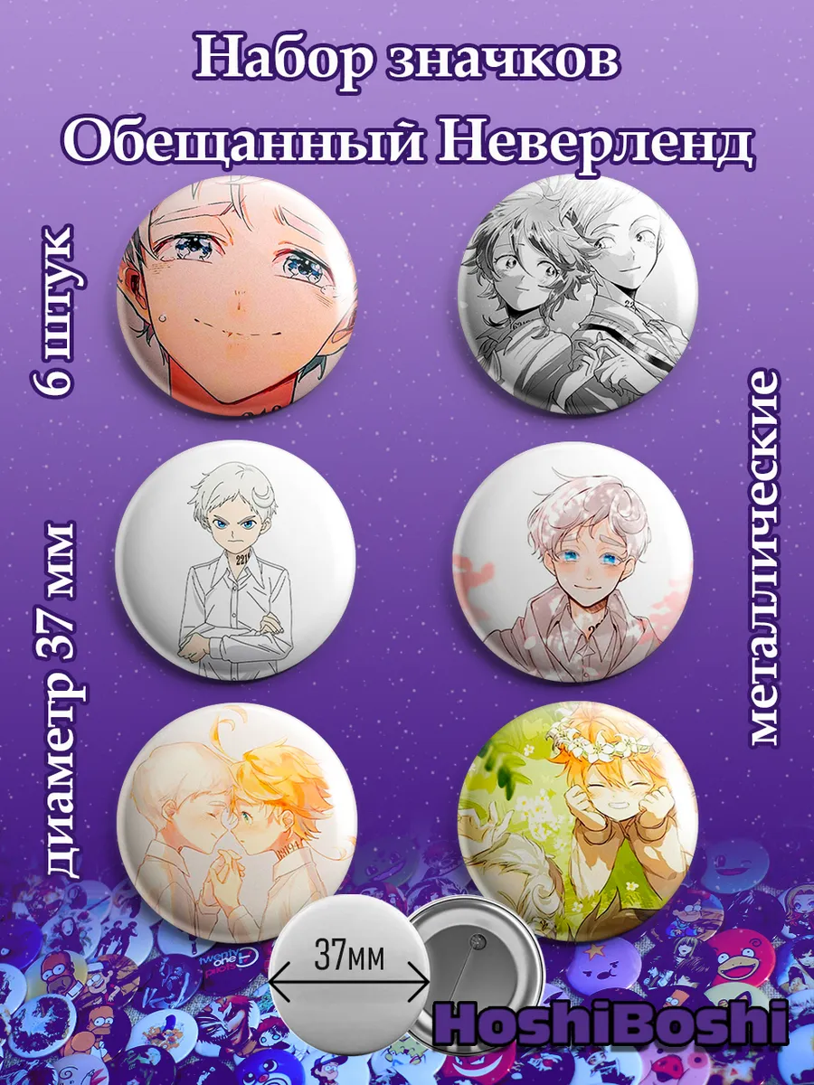 Набор из 6 металлических значков с изображениями из аниме Обещанный Неверленд ( The Promised Neverland ).