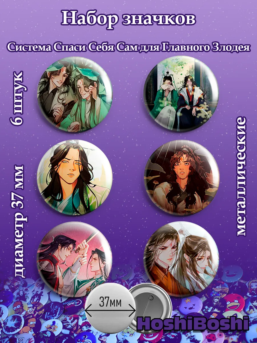 Набор из 6 металлических значков с изображениями из аниме Система спаси себя сам для главного злодея ( Chuan Shu Zijiu Zhinan ).