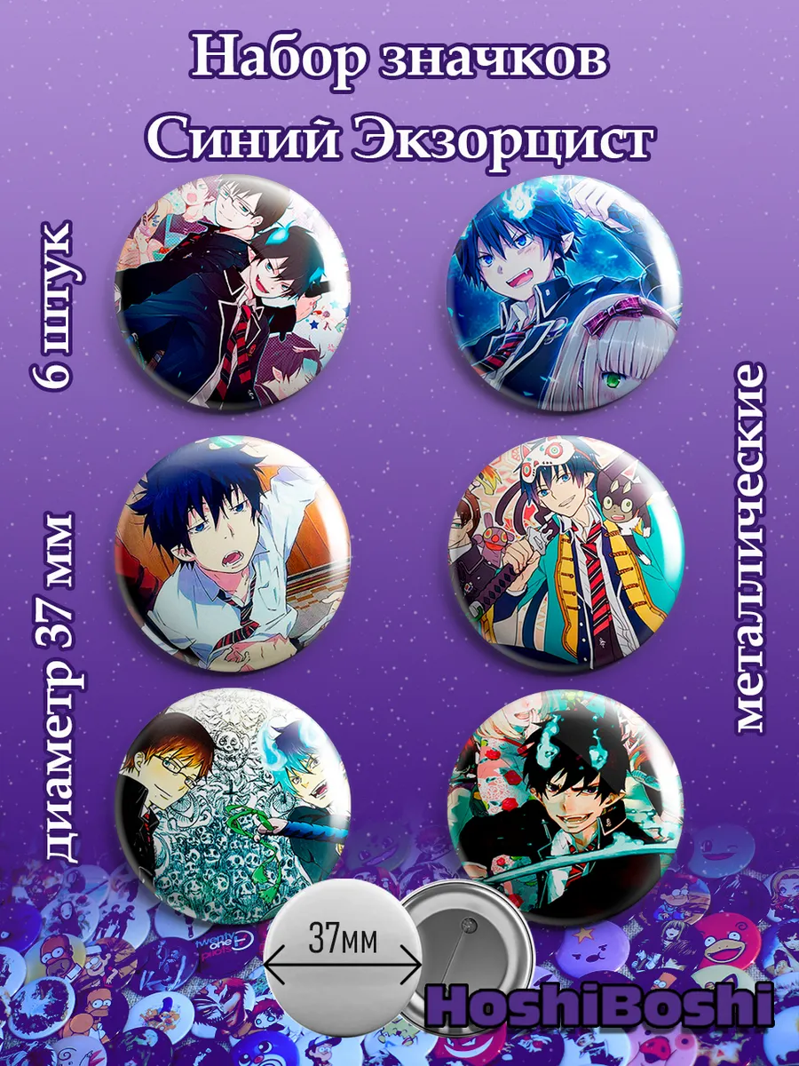 Набор из 6 металлических значков с изображениями из аниме Синий Экзорцист ( Blue Exorcist ).