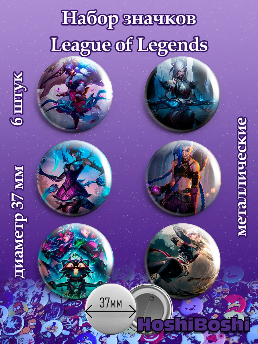 Набор из 6 металлических значков с изображениями из игры Лига Легенд ( League of Legends ).