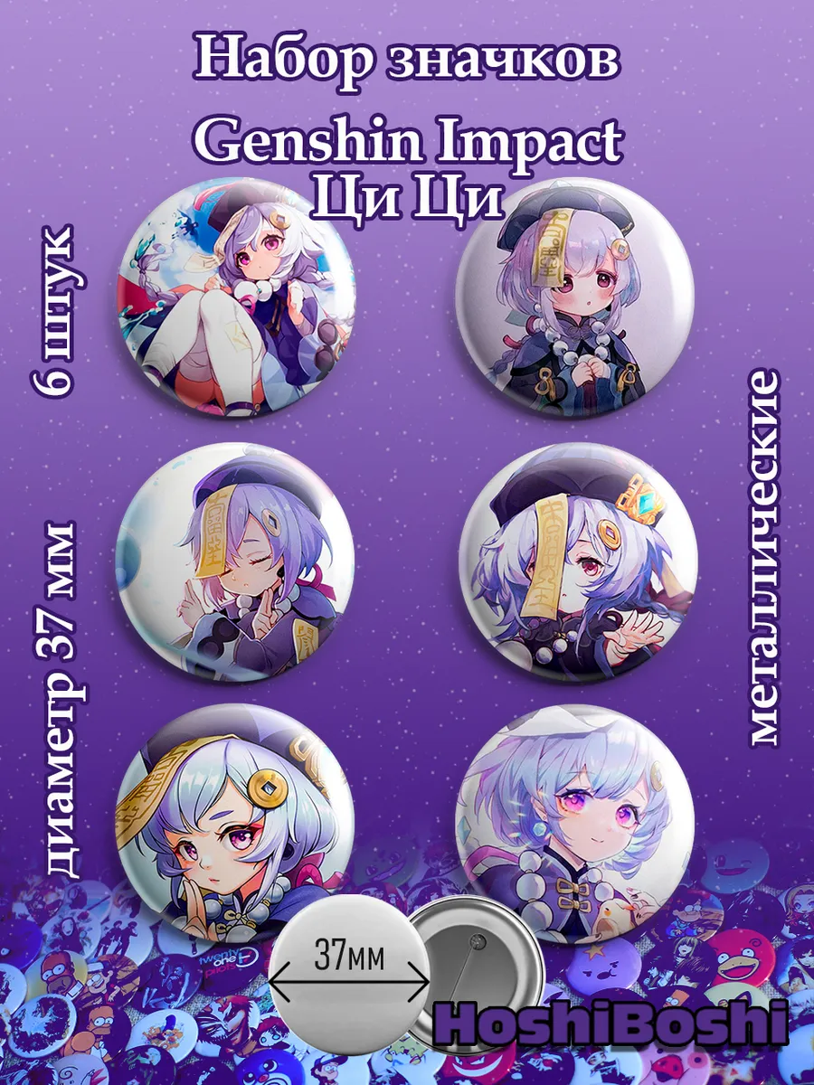 Набор из 6 металлических значков с изображениями из игры Геншин Импакт ( Genshin Impact ).