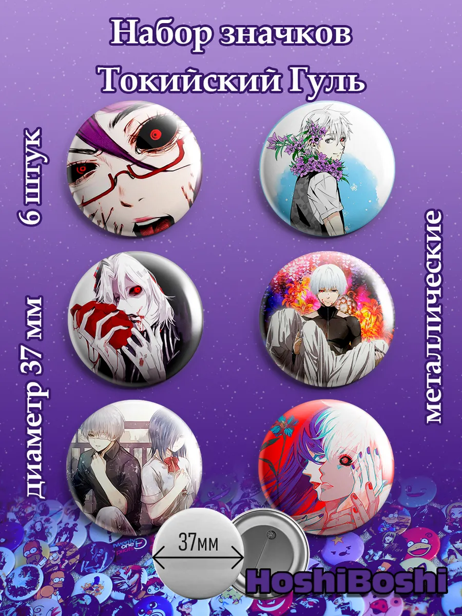 Набор из 6 металлических значков с изображениями из аниме Токийский гуль ( Tokyo Ghoul ).