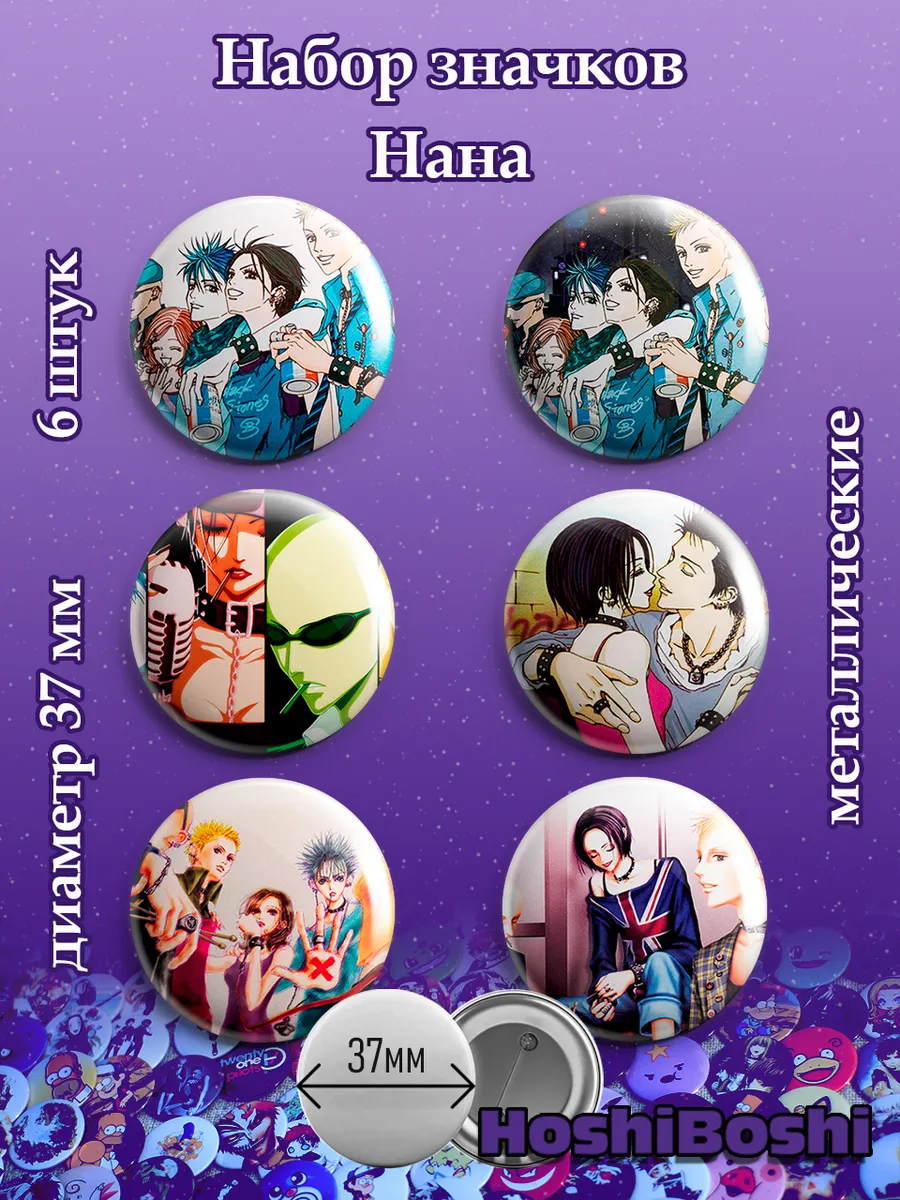 Набор из 6 металлических значков с изображениями из аниме Нана ( Nana ).
