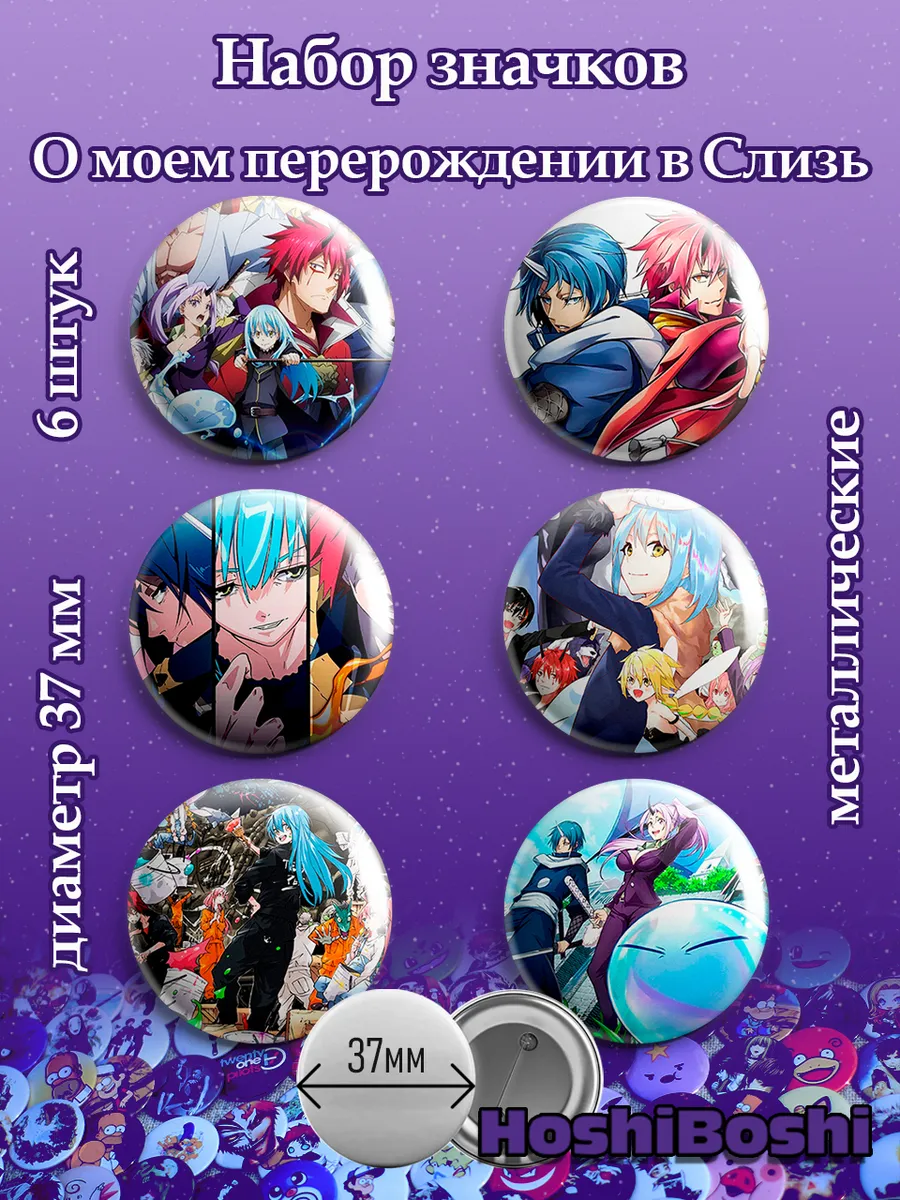 Набор из 6 металлических значков с изображениями из аниме О моем перерождении в слизь ( Tensei shitara Slime Datta Ken ).
