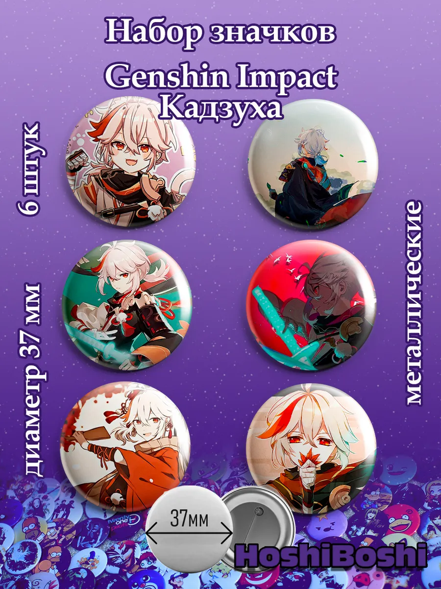 Набор из 6 металлических значков с изображениями из игры Геншин Импакт ( Genshin Impact ).