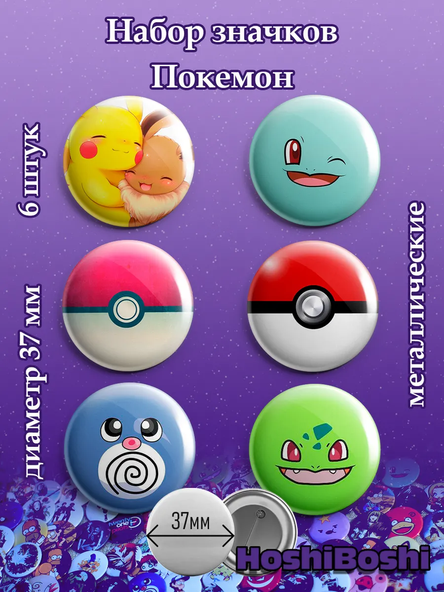 Набор из 6 металлических значков с изображениями из аниме Покемон ( Pokémon ).