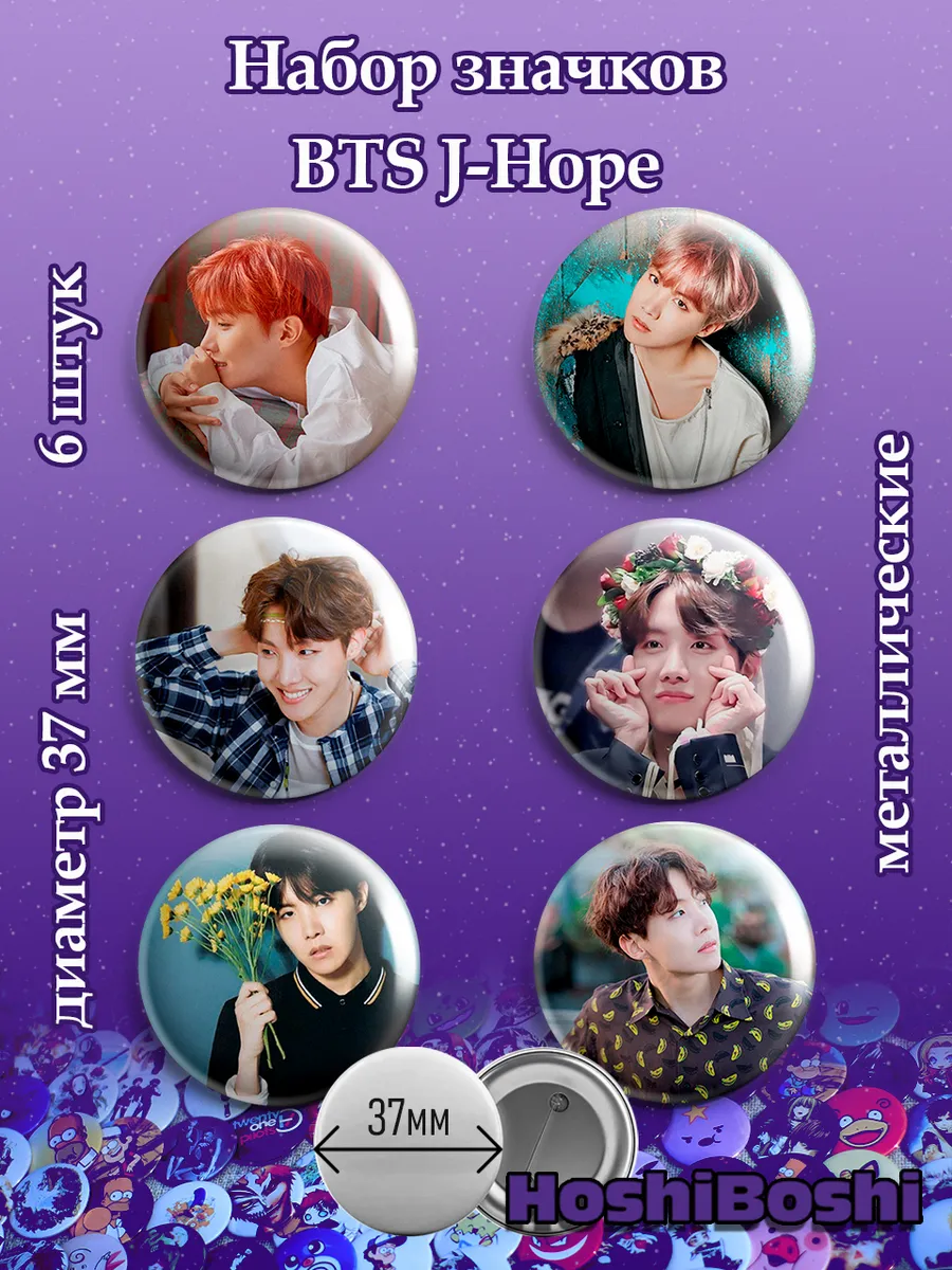 Набор из 6 металлических значков с изображениями с Кей-Поп группой БТС ( BTS ).