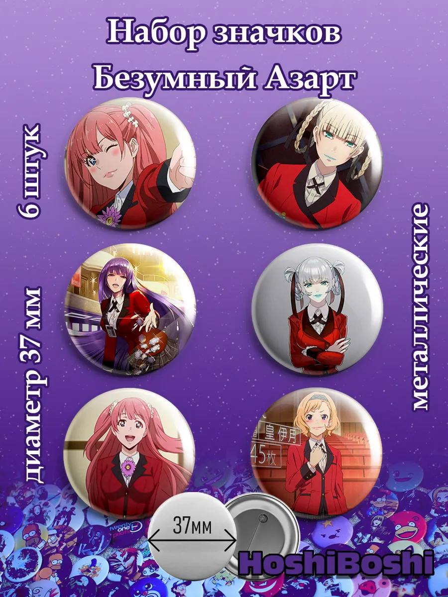 Набор из 6 металлических значков с изображениями из аниме Безумный Азарт ( Kakegurui ).