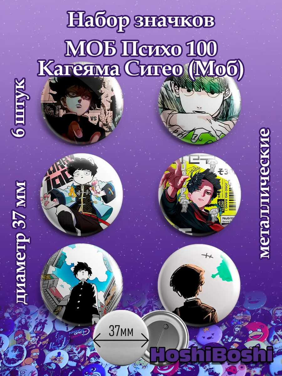 Набор из 6 металлических значков с изображениями из аниме Моб Психо 100 ( Mob Psycho 100 ).