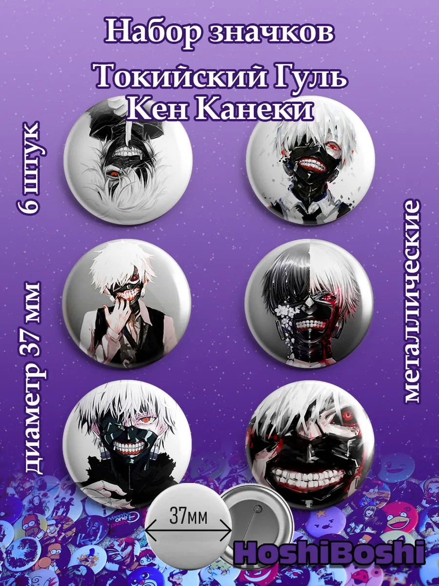 Набор из 6 металлических значков с изображениями из аниме Токийский гуль ( Tokyo Ghoul ).