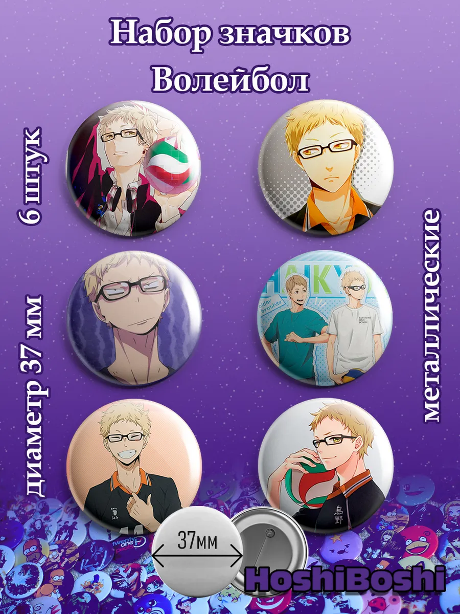 Набор из 6 металлических значков с изображениями из аниме Волейбол ( Haikyu!! ).