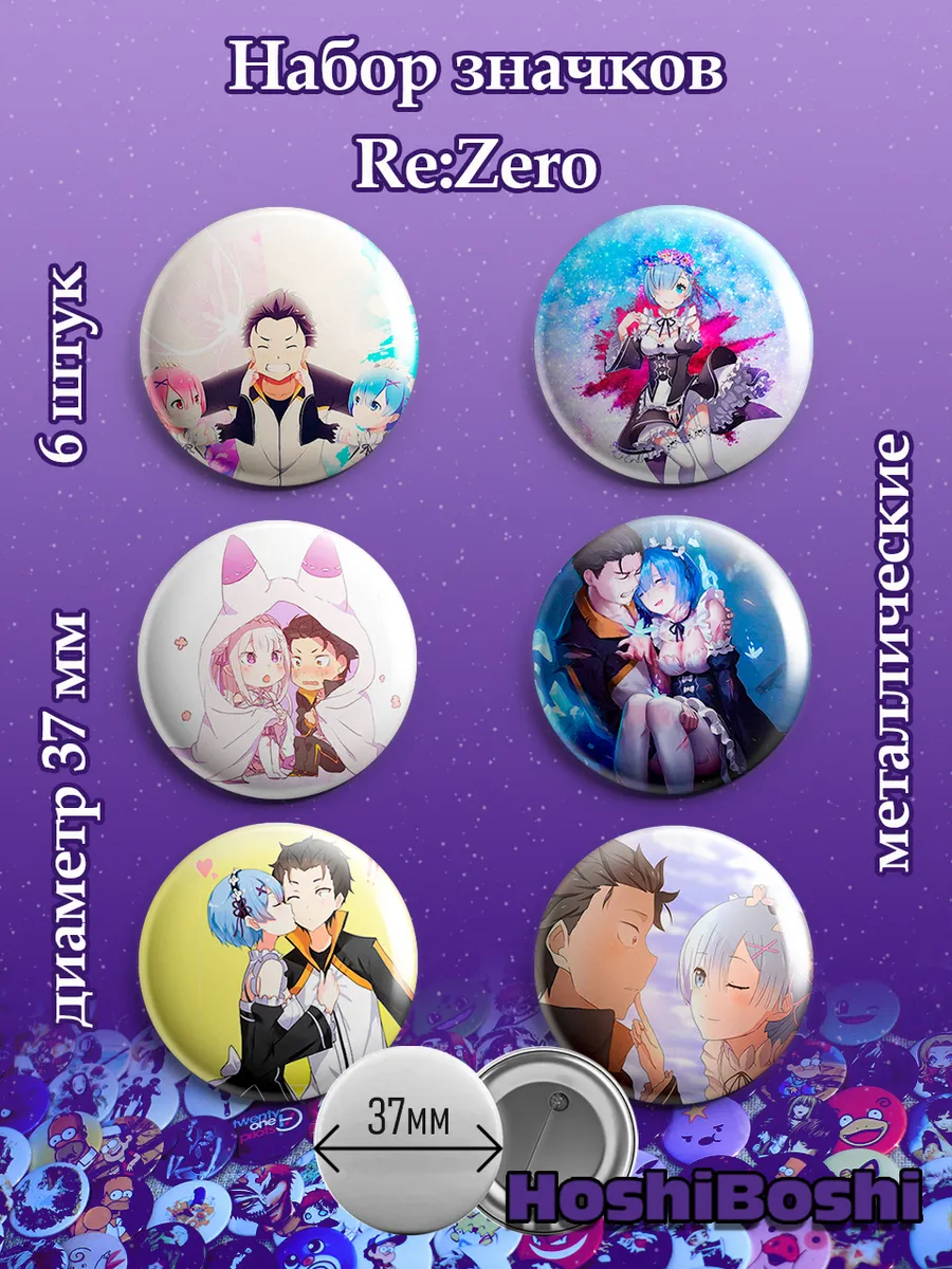 Набор из 6 металлических значков с изображениями из аниме Жизнь в альтернативном мире с нуля Резеро ( Re: Zero ).